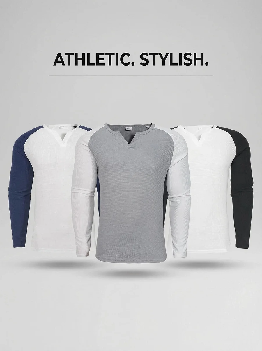 【Muscle Shirt Design: Unique v-neck long sleeve t-shirts, perfect for sports, work, vacations, and casual occasions. Essential for your spring and fall wardrobe】