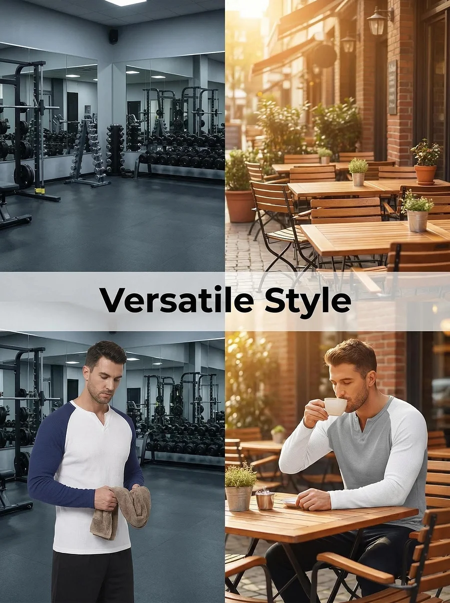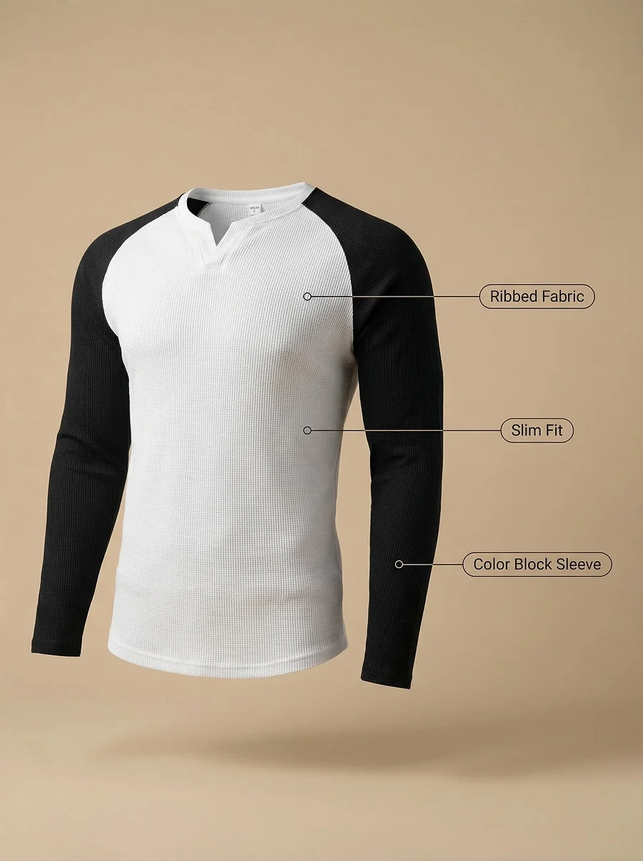 【1.Ribbed Fabric: Breathable Comfort All Day Long. 2. Slim Fit: Enhance Your Physique.3. Color Block Sleeve: Stand Out in Style】